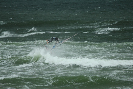 Well so much for what we got, but more importantly what about the people and who made a total prat of themselves I hear you ask? Well first of all we didn't have any serious injuries, at least not to people. But instead we did have the 3 plumbers. They were Minty (David Minton), Paul Reid and Barry Whitelaw who turned up always in a convoy of 3 white vans. We expected to see pipes, lagging and valves inside but instead there was a big pile of gear. It needed to be a big pile as every year there's one bloke who seems to kill kit and this year it mast mangling Minty. He warmed up by trashing his 6m at the reef - and I do mean trashing as he came back with 2 separate sails or at least pieces of sails. His fellow plumbers thought it was good of him to do this near the exit of the reef break and proceeded to gybe round him a few times. But after 30 minutes in the water we began to realise that perhaps even that was wearing thin. We were about to launch Ming the Merciless on a Sup to tow him in when it dawned on us that crafty Minty had a plan. This was to lie in the water until he'd drifted right across Magheroarty Bay (45 minutes) and then cunningly be pulled into the area of the largest waves where he'd be totally pounded - just in case he hadn't done enough damage to his kit, before crawling ashore. And you have to hand it to him, he executed his plan perfectly.