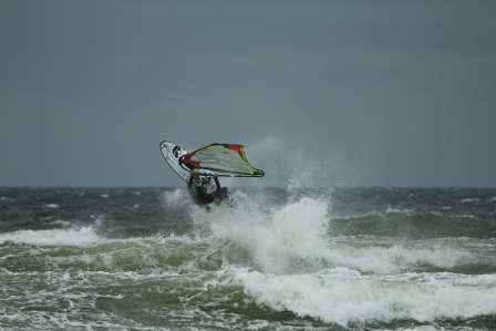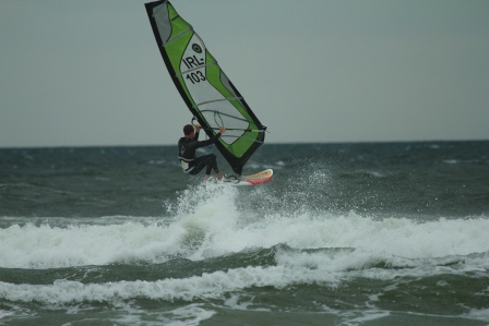 The real star of course was Cormac O'Brien. Apart from sailing brilliantly the whole time he had 2 standout moments. Firstly when we was seen riding quite large waves at Magheroarty front to sail! And then secondly going for an ariel, totally losing it but hanging on like some demented Superman as he crashed to earth, well into the sea. Oh and we got it all on video and multishot photographs.
