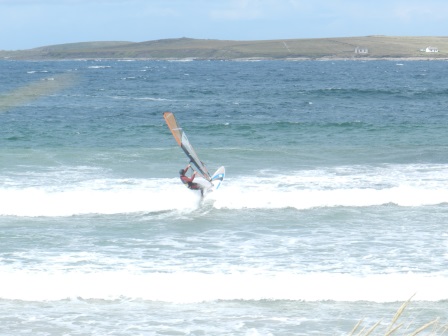As those going up to Donegal for the courses know or soon will know, Magheroarty beach near the downtown metropolis of Gortahork - that's Gort an Choirce or Gort a' Choirce depending on your Irish, is a great place to windsurf. Actually it's world class when the wind is strong and the waves are as high as houses. So no wonder it can put people off.