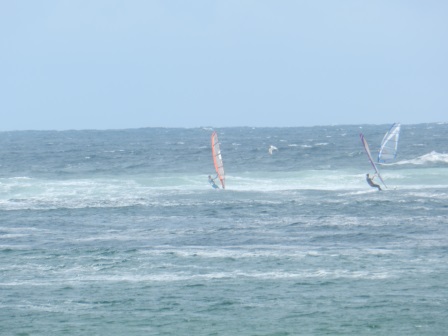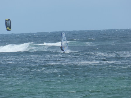 It was 5m weather, well it was for me although Wookie and the more serious wave heads were on 4.2m - 4.5m. And the water was pretty choppy so you needed to be on a smaller board, in my case 90 ltr FSW. But the sun was out and the waves were nice ie not too big.