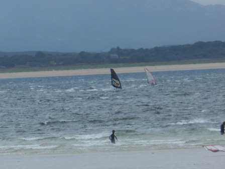 Sunday however was very different and they ran 9 races. Starts were from Tramore, then downwind in a series of legs into Downings. The serious racers like Maurice and Wookie were flying, but for the also rans like me it was tough work as you wouldn't believe how chopped up the water is when you're behind all the flying machines. I struggled on my 122 slalom board (7.5m) as the wind and water state grew. The real racers were on around 90 ltrs. Even changing down to 110 ltrs later, I was still knackered.