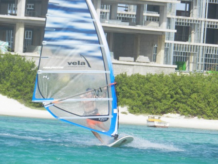 Fisherman's Huts is the main windsurfing area and it has a massive area of waist deep water for beginners. There is a reef which runs out perpendicular to the shore which is your get out of jail card. It's off shore wind, so if you find that your next destination is Venezuela, then you can always walk upwind on the reef. The big issue here is the new Ritz Carlton hotel which is now up but not open. As the photographs show its upwind of the current hire shop and it has badly affected the wind here.