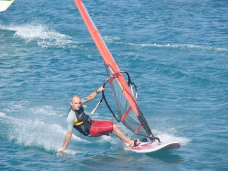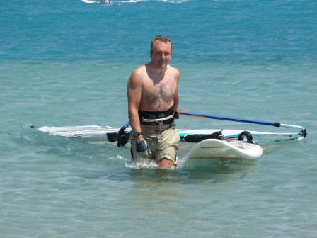 Now I've got to say that the staff at Ocean Source were first class. The whole attitude was help you, do things for you and just to ensure you had a great holiday. They provided video coaching, which was also to a very high standard. Mind you it needed to be as the first day revealed widespread use the bent front arm in the gybe. Must be a Newtownards thing. Trust me, by the time we left our arms were straighter than a Nazi salute and our gybes were shooting out faster than Wookie to the toilet as a result.