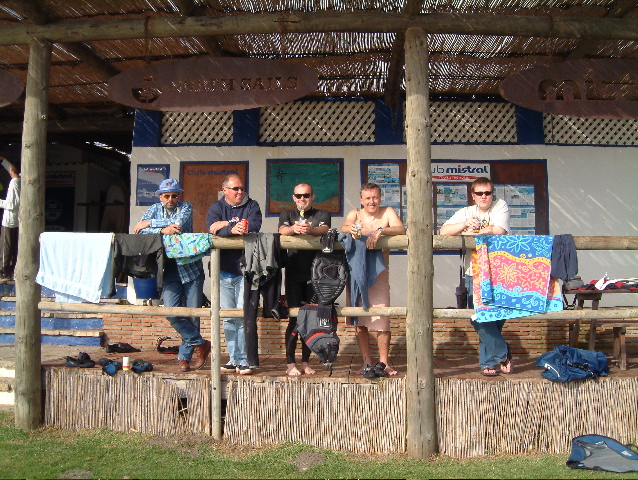 Except that it was probably more windy in N Ireland. You can imagine the scene, the 6 Amigos have driven through the night , arrived, got about 2 hours sleep and then the Hairy Alarm Clock aka Mr Wookie got us all out of the house (almost) before you could say fry that bacon to hit the water. So first day we scored some OK wind, but it really took 7.3m sails - and guess what good old Mr Mistral only had 2 of them. So we took it in turns, but didn't care - this is Tarifa and it always gets windy. Doesn't it?
